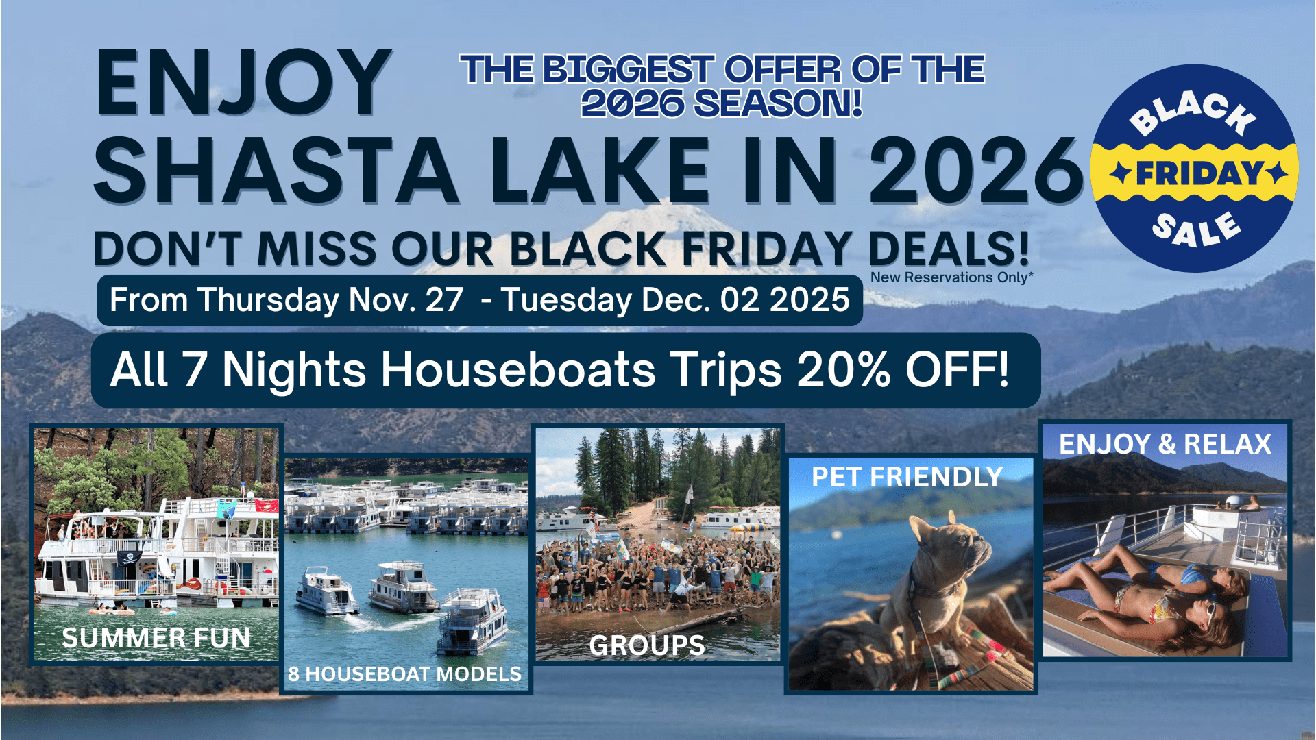 -Don't miss the biggest discount of the incoming season! - Black Friday Sale! - From Nov27 to Dec 02 - All 7 Nights Houseboats Trips 20% OFF! - Subscribe to our Newsletter for news, discount codes, raffles and more!! - Get Ready to Book your Houseboat Vacation at the Best Price!-