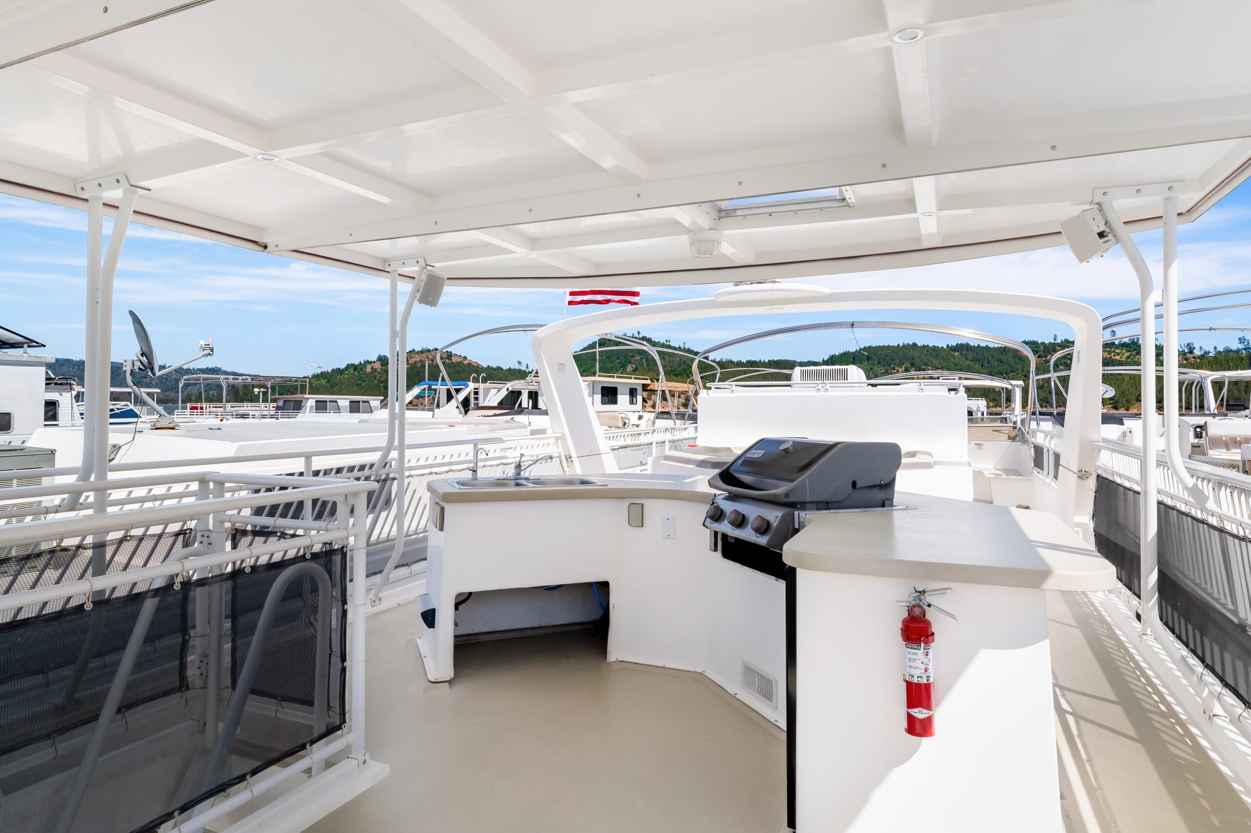Step up to the upper deck, where relaxation meets fun. Unwind in the hot tub while taking in breathtaking views of Shasta Lake, or retreat to the air-conditioned loft for a cool break. The second galley, complete with a barbecue and fridge, makes it easy to whip up snacks and meals without missing a moment of the outdoor fun.