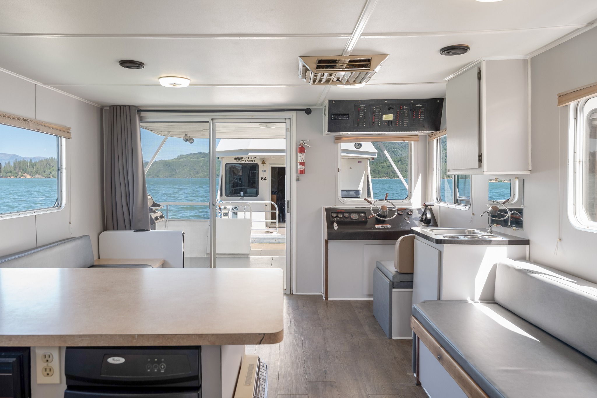 Enjoy the perfect blend of comfort and convenience aboard the Senator Houseboat at Silverthorn Resort. This spacious houseboat is designed to accommodate up to 16 guests, making it ideal for both large and small groups. The modern kitchen is fully equipped with a built-in range/oven, dishwasher, microwave, trash compactor, two refrigerators, and ample cabinet and counter space for all your culinary needs.