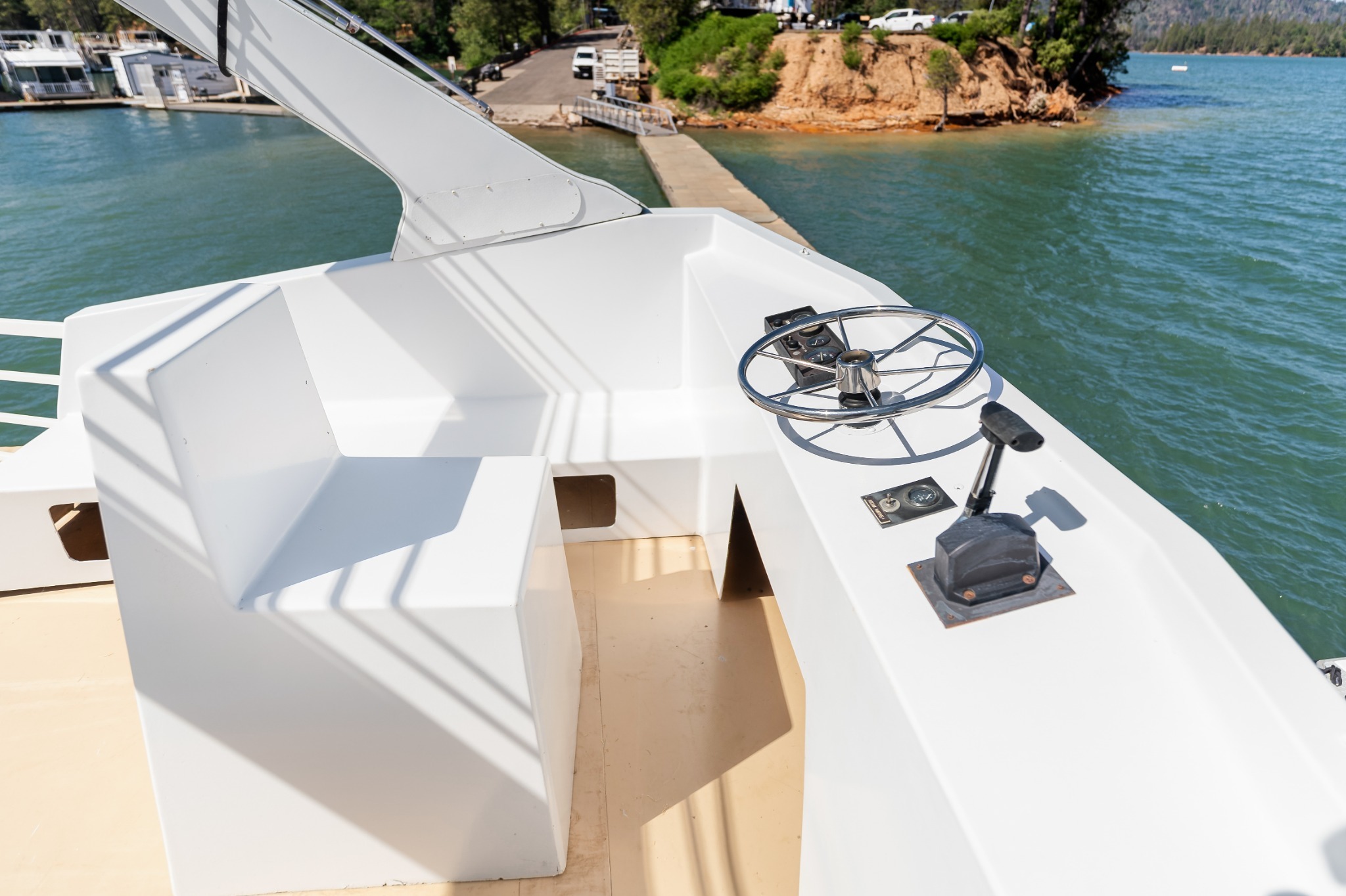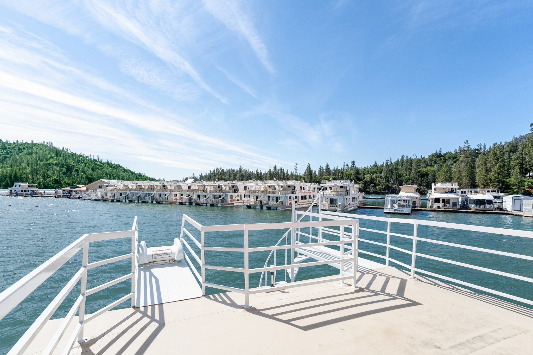 The Senator Houseboat also boasts entertainment features, including a flat screen TV/DVD combo and an AM/FM CD stereo. For fun in the sun, take advantage of the water slide or relax with the cool breeze from the swamp cooler. The captain’s fly bridge allows you to navigate from the second deck, offering scenic views of Shasta Lake.